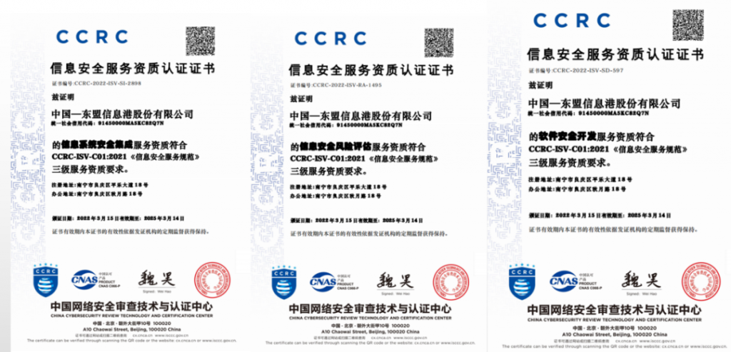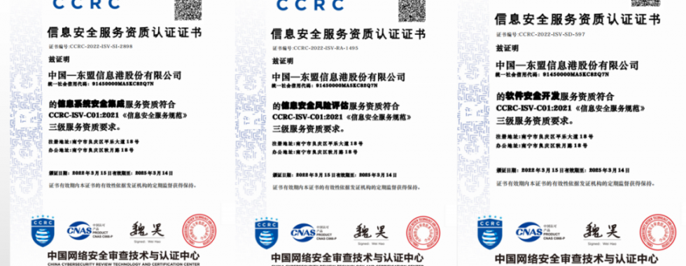 2022年3月,順利通過CCRC信息安全服務(wù)資質(zhì)安全開發(fā),安全集成,風險評估三項認證。